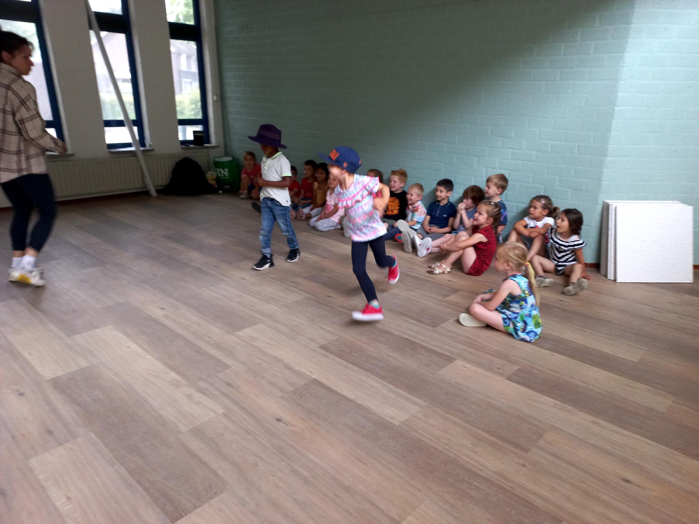 Docente Sophie van RICK geeft binnen het Jeelo-thema ‘Veilig helpen’ 3 lessen dans/drama aan de peuters en kleuters van IKC De Bongerd in Nederweert. De kinderen leren aan de hand van rollenspelen hoe ze elkaar in verschillende situaties kunnen helpen. Ook wordt zo de doorgaande leerlijn van peuters naar kleuters bevorderd.